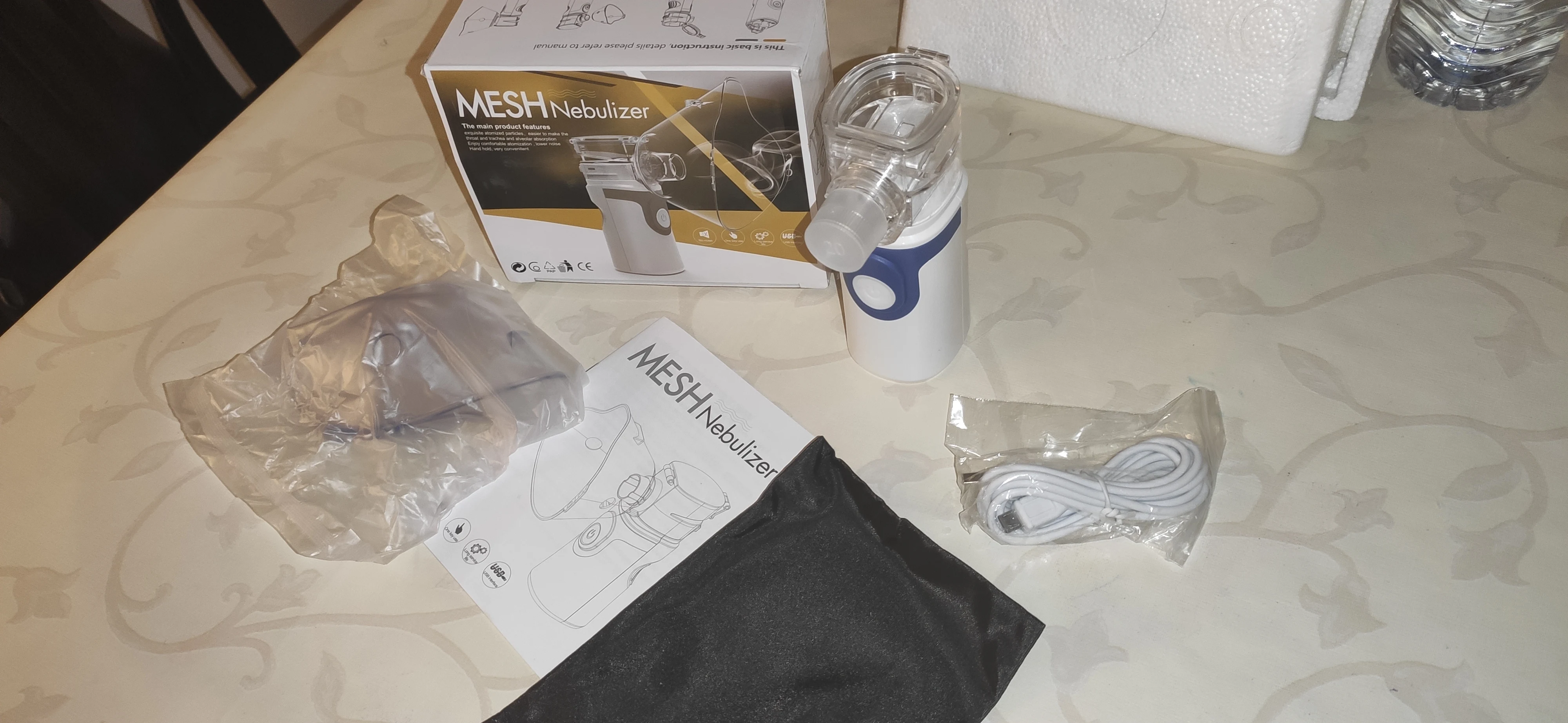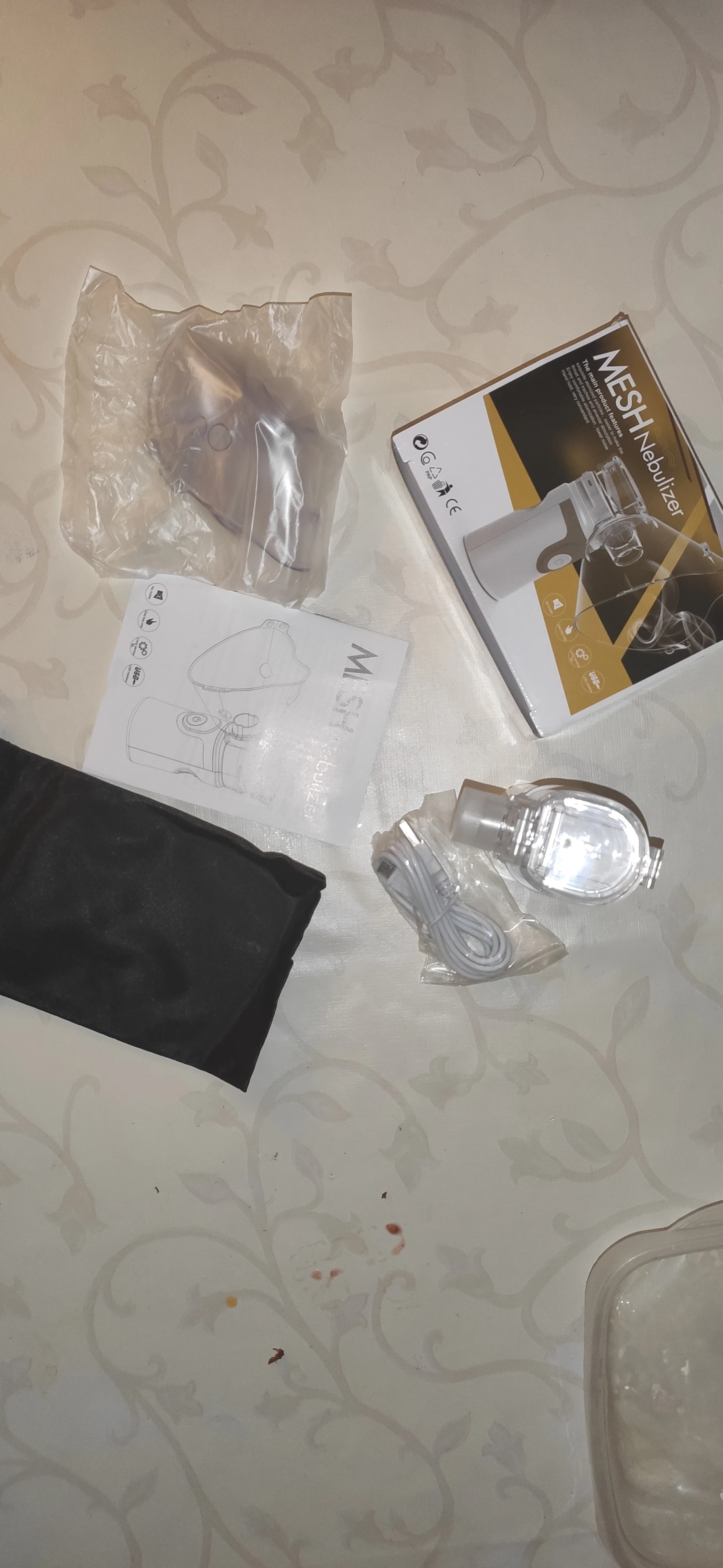 I received the nebulizer today. Everything works and compact, in the kit 3 nozzles. Satisfied with the product, I recommend!